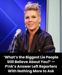 Pink has always been known for her honesty, but even seasoned reporters were stunned when she was asked one of the toughest questions yet: “What’s the biggest lie people still believe?”